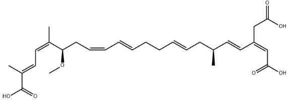 椰毒假單胞菌酵米面亞種產生的一種可以引起食物中毒的毒素。系統命名為:3-羧甲基胺-17-甲氧基-6,18,21-三甲基-廿二碳-2,4,8,12,14,18-七烯二酸。