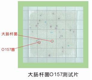 5.2、經本公司檢測,大腸桿菌O157測試片對純菌的檢測靈敏度為1CFU/mL。