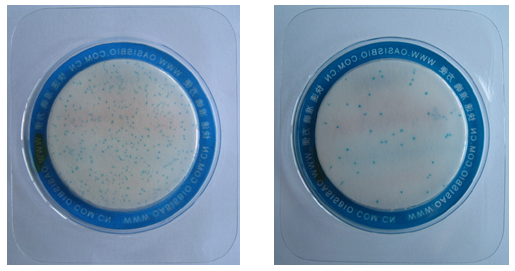 在檢測板上生長的藍(lán)綠色點即為李斯特菌陽性點,若檢測板上無菌生長或者長出點為其他顏色點即為李斯特菌陰性。